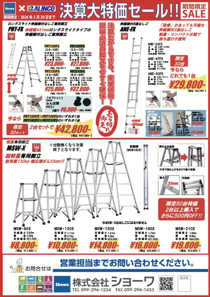 ・アルインコ社 脚立 決算セール
